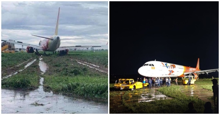 Trả lời VTC News về sự cố máy bay bị trượt khỏi đường băng, lao ra sân cỏ khiến toàn bộ các chuyến bay khác tại Tân Sơn Nhất bị ảnh hưởng chiều 14/6, đại diện Vietjet Air cho biết, nguyên nhân là do mưa gió lớn.