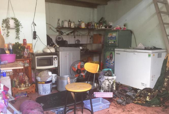 Hiện trường vụCăn gác lửng nơi phát hiện thi thể bố con ông H. cháy.