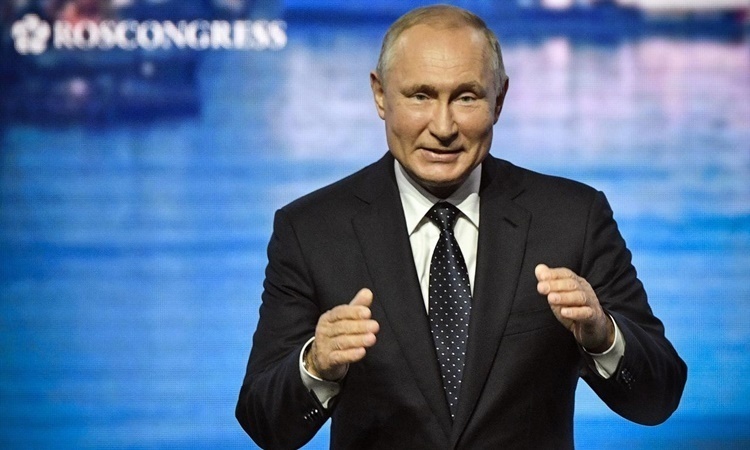 Tổng thống Nga Putin tại lễ khai mạc phiên toàn thể Diễn đàn Kinh tế phương Đông ở Vladivostok hồi tháng 9/2019. Ảnh: Reuters.
