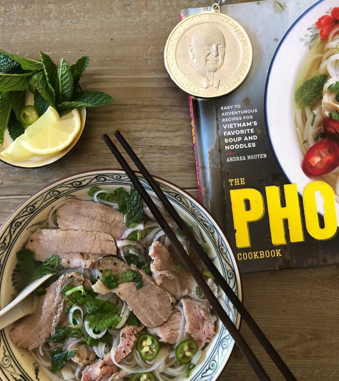 Quyển The Pho Cookbook của Andrea cùng giải thưởng James Beard Cookbook Award. ẢNH: VIET WORLD KITCHEN