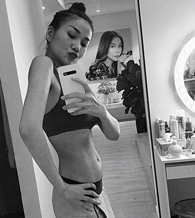 Mới đây trên tài khoản Instagram, Thanh Hằng đã đăng tải một bức ảnh diện nội y vô cùng nóng bỏng, tạo dáng trước gương. Nữ diễn viên khoe thành quả giảm cân của mình và cho biết hiện tại vòng eo của cô đang ở mức 51 cm.