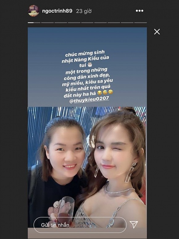 Tết năm ngoái, Thúy Kiều gây sốt khi khoe phong bao lì xì do Ngọc Trinh thưởng, số tiền được dự đoán là khá khủng. Chưa hết, Thúy Kiều còn thường xuyên được còn được Ngọc Trinh dắt theo, thưởng thức đủ mọi loại "cao lương mỹ vị": súp bào ngư, tôm hùm, cá hồi,... và đi du lịch nước ngoài.