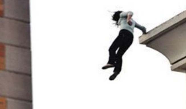 Vợ ông Dư dự định nhảy lầu tự tử và được ngăn cản kịp thời. (Hình: Thanh Niên cắt từ clip)