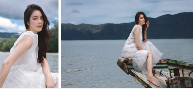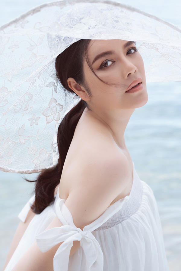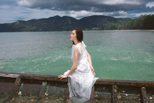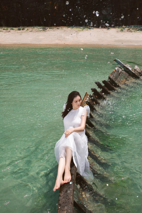 Được biết, bộ ảnh này cũng là lần đầu tiên Lý Nhã Kỳ và ê-kíp thực hiện tại Côn Đảo. Trong ảnh, người đẹp tuổi U40 mặc váy trắng tinh khôi được thiết kế xếp tầng xinh đẹp như công chúa.
