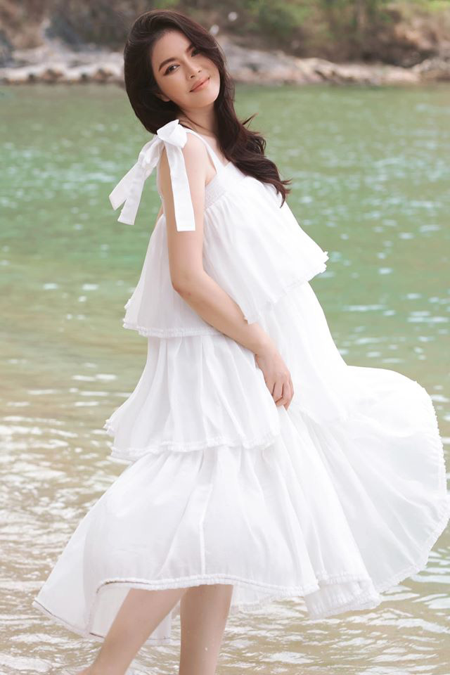 Ngoài kiểu váy xếp tầng "hack tuổi", Lý Nhã Kỳ còn chọn một chiếc váy trắng nhẹ nhàng được người hâm mộ khen ngợi trẻ trung như thiếu nữ.