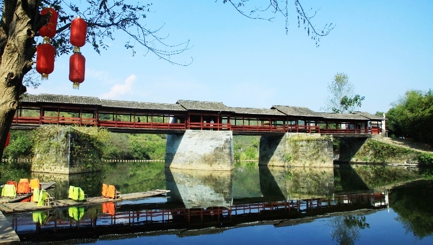 Một phần hành lang mái đình bằng gỗ của cây cầu cổ này bị cuốn trôi một phần trong trận lũ quét hôm 8/7 tại thị trấn Thanh Hoa, huyện Vụ Nguyên, tỉnh Giang Tây, Trung Quốc. Video do truyền thông Trung Quốc công bố cho thấy các mố cầu bằng đá vẫn đứng vững, nhưng một nhịp cầu và kiến trúc bằng gỗ bên trên bị hư hại.