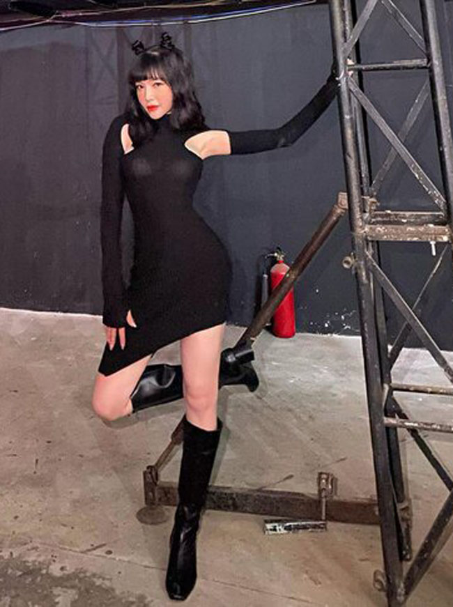 Vốn là mỹ nhân táo bạo, Vũ Ngọc Anh cũng từng khoe đường cong trong trang phục bodysuit mỏng tang.