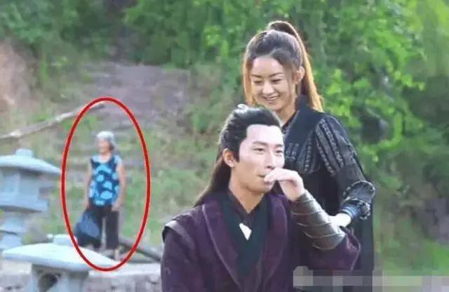 Trong phim "Sở Kiều truyện" có cảnh bà cụ diện đồ hiện đại đứng đằng sau cặp đôi diên viên mặc đồ cổ trang.