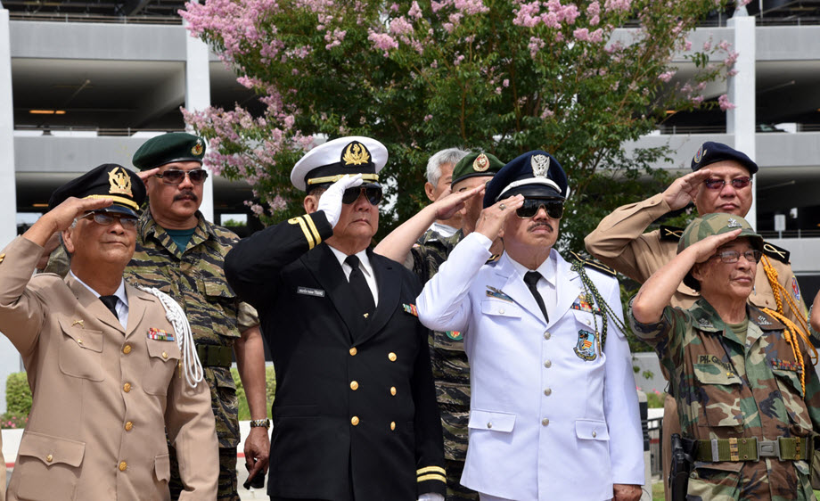 Trung Tá Hải Quân Hoa Kỳ, ông Lê Hưng (hàng đầu, thứ hai, từ phải) trong lễ kỷ niệm Ngày Quân Lực Việt Nam Cộng Hòa 19 Tháng Sáu, 2020, tại Tượng Đài Chiến Sĩ Việt Mỹ, Westminster. (Hình: Văn Lan/Người Việt)