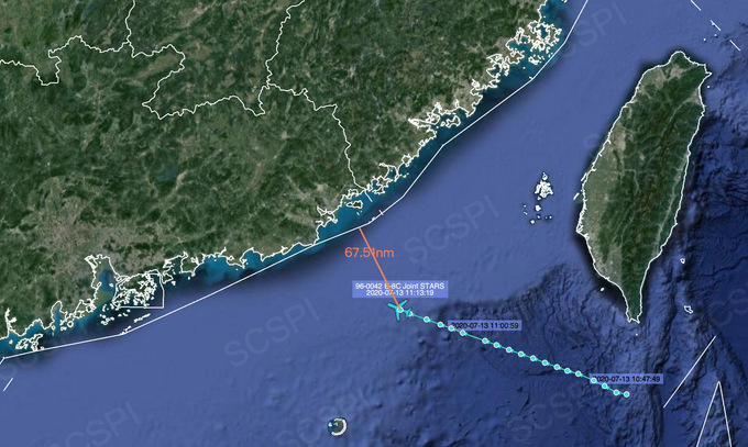 Chiếc E-8C của không quân Mỹ bay qua khu vực phía nam đảo Đài Loan và áp sát tỉnh Quảng Đông, trong khi lực lượng vũ trang Đài Loan tiến hành đợt diễn tập quân sự lớn, tổ chức Sáng kiến Tình hình Chiến lược Biển Đông (SCSPI) thuộc Đại học Bắc Kinh, Trung Quốc, cho biết.