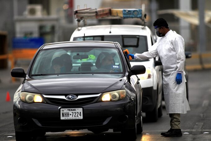 Mexico kiểm tra nhiệt độ đối với những người ngồi trên các phương tiện giao thông đến từ Mỹ vào ngày 12/7. Ảnh: Luis Torres/EPA.