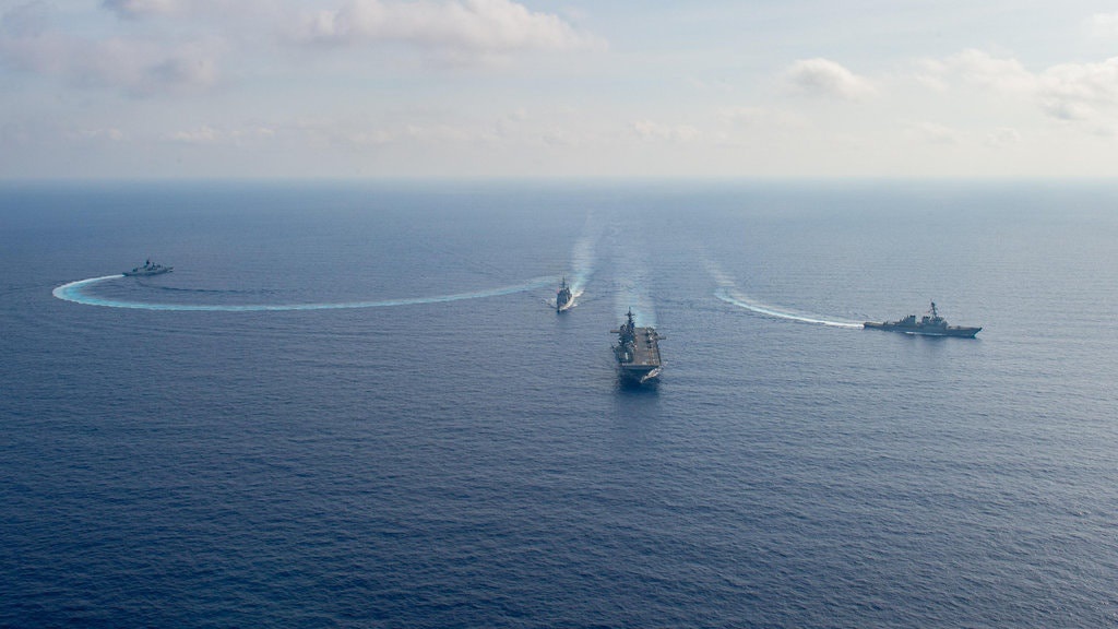 Các tàu của Mỹ và Australia trên Biển Đông hồi tháng 4. Ảnh: Reuters.