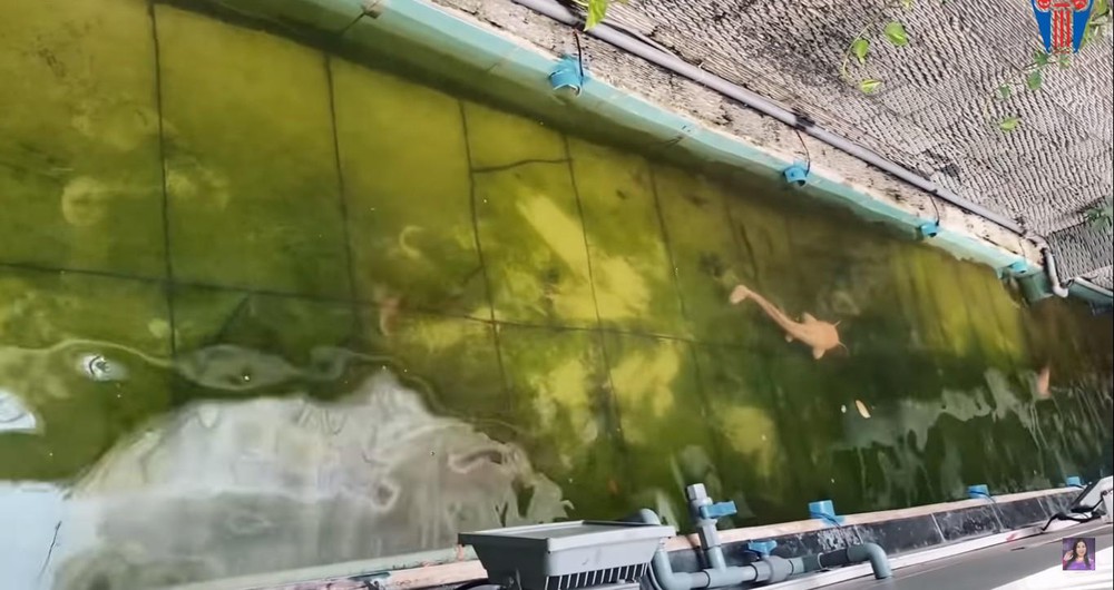 Đồng thời trong khu vườn còn có một hồ nước nhân tạo nhỏ để nuôi cá trê nhưng nữ nghệ sĩ vô cùng hoang mang cho biết: “không hiểu tại sao ban đầu cá có màu đen nhưng khi tôi nuôi đã đổi thành màu trắng nên tôi gọi đây là hai con cá trê thành tinh".