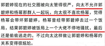 Quen nhau qua lần hợp tác trong bộ phim "Tiểu thời đại", Dương Mịch và Quách Bích Đình đã trở thành đôi bạn tốt và đồng thời chiếm trọn được trái tim fan hâm mộ bởi diễn xuất tốt và nhan sắc xinh đẹp. Thế nhưng có nguồn tin lại cho rằng, sau khi về làm dâu nhà họ Hướng, Quách Bích Đình đã không còn liên lạc gì với cô bạn này chỉ vì mẹ chồng của mình.