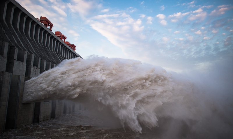 Đập thủy điện lớn nhất hành tinh vẫn giữ vai trò điều tiết nước khi mưa lũ diễn biến phức tạp. Ảnh: Tân Hoa xã