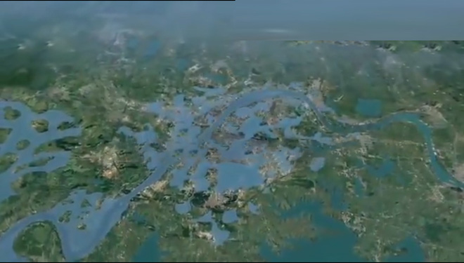 Mô phỏng Vũ Hán bị chìm trong biển nước.
