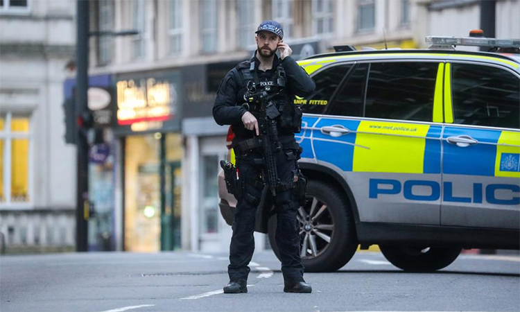 Cảnh sát gác tại hiện trường một vụ án ở London, tháng 2/2020. Ảnh: Reuters.