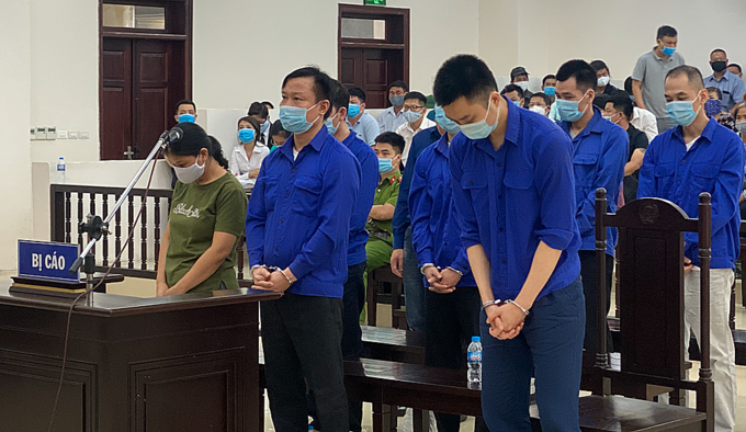Lê Văn Quang (đứng giữa, hàng đầu) tại buổi tuyên án chiều 4/8. Ảnh: Văn Bình