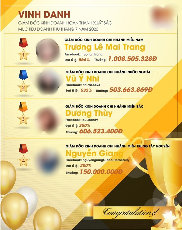 Danh sách những nhân viên xuất sắc và có số tiền mà họ thực lĩnh được từ việc làm tốt (Ảnh: FBNV)
