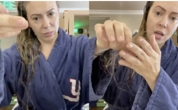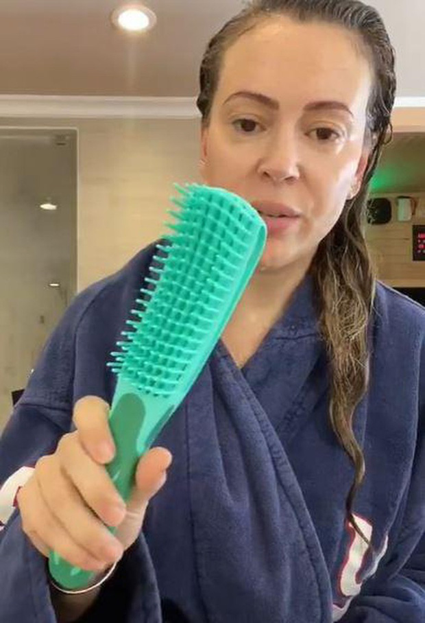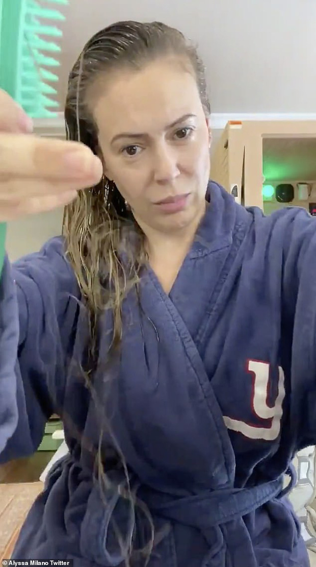 Mới đây, Alyssa đã chia sẻ một video khác trên Twitter quay lại lúc cô vừa tắm xong. Mỹ nhân Phép thuật đã dùng một chiếc lược chải mái tóc còn đang ướt sau khi gội đầu. Tuy nhiên chỉ sau vài lần chải nhẹ, tóc cô đã rụng và dính đầy lên chiếc lược. Cộng đồng mạng tỏ ra vô cùng sửng sốt và lo sợ khi chứng kiến cảnh tượng này. Nữ diễn viên nói rằng mỗi một lần chải là một nắm tóc của cô "ra đi" vì COVID-19. Alyssa Milano cũng nhắc nhở mọi người chung tay bảo vệ cộng đồng khỏi những tác hại nghiêm trọng của dịch bệnh.