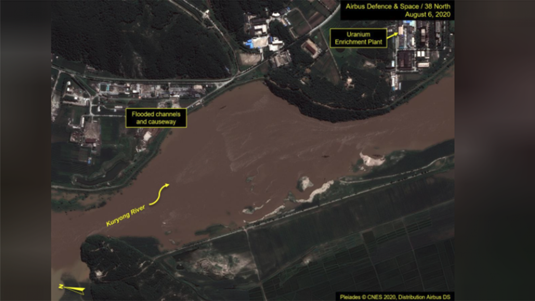 "Hình ảnh ngày 6 tháng 8, khi so sánh với hình ảnh ngày 22 tháng 7, cho thấy mực nước sông Kuryong chảy dọc theo khu phức hợp Yongbyon".