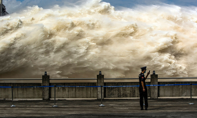 Nước xả từ đập Tam Hiệp để giảm áp lực lũ lụt tại Nghi Xương, tỉnh Hồ Bắc hôm 19/7. Ảnh: AFP.
