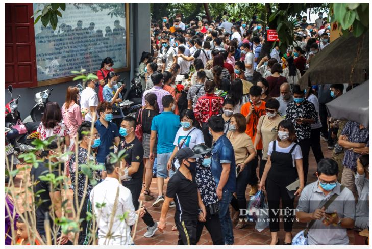 Dù là ngày đầu Hà Nội thực hiện giãn cách ở nơi công cộng, tăng cường các biện pháp phòng, chống dịch Covid-19 nhưng tại phủ Tây Hồ, dòng người vẫn đổ xô về lễ rất đông đúc.