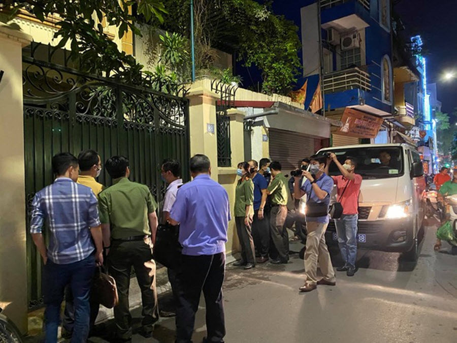 Giới hữu trách khám xét nhà riêng của ông Nguyễn Đức Chung tại phố Trung Liệt, quận Đống Đa, Hà Nội. (Hình: Đ.T)