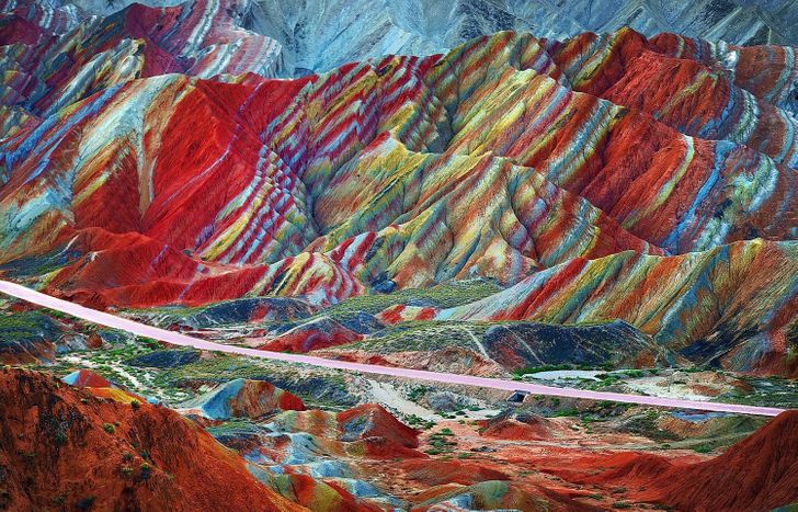 Địa điểm đặc biệt của Trung Quốc - Công viên Địa chất Trương Dịch – Đan Hà – hình thành sau một quá trình vận động địa chất kéo dài 24 triệu năm. Gió, mưa và đặc điểm địa chất đã khiến vùng núi này trở nên vô cùng sặc sỡ.