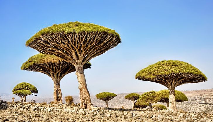Trên quần đảo này, cảnh sắc trông thật kỳ lạ. Những cây Máu Rồng là thực vật đặc hữu trên quần đảo này, không thể tìm thấy ở bất cứ nơi nào khác. Nếu bóc lớp vỏ cây ra, những dòng nước đỏ sẽ chảy ra, trông như cây đang chảy máu.