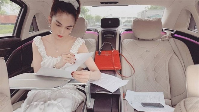 Trên trang cá nhân của mình, Ngân 98 vừa đăng tải hình ảnh ngồi trong xế sang làm việc với phong cách của một doanh nhân. Nàng hot girl lắm chiêu đã dùng xe của bạn trai Lương Bằng Quang để giải quyết những công việc hàng ngày.