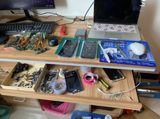 Bàn làm việc của Vương, nơi 5 phút cho thể "xuất xưởng" một chiếc smartphone Huawei. Ảnh: GXNews.