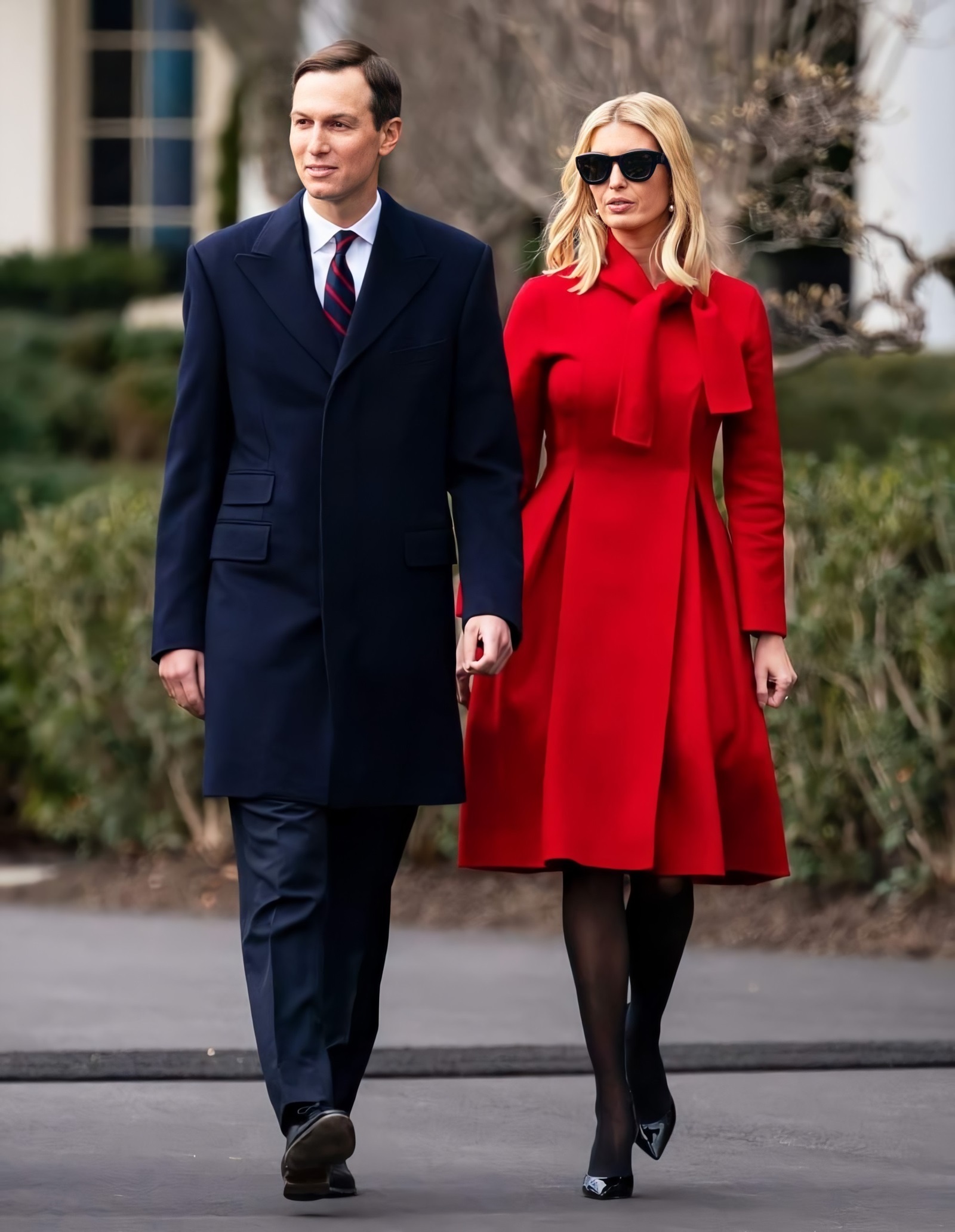 Hôm 29/1, Ivanka tản bộ cùng chồng ở Washington D.C. (Mỹ) với trang phục bắt mắt. Cô phối áo khoác đỏ của Carolina Herrera cùng quần tất đen, giày cao gót và kính mát. Ảnh: AP/Shutterstock.