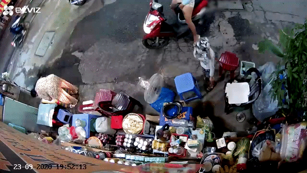 Toàn bộ vụ việc đã được camera an ninh gần đó ghi lại. Vụ việc xảy ra vào khoảng vụ việc xảy ra vào khoảng 7h tối ngày 23/9. Vào thời điểm trên, 1 người phụ nữ đi xe tay ga màu đỏ, có chở theo bé trai khoảng 4 - 5 tuổi dừng trước quán tạp hóa ven đường của 1 cụ bà để mua đồ.