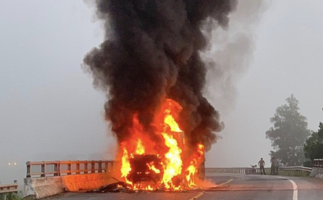 Đang lưu thông trên tuyến Quốc lộ 1A theo hướng Bắc vào Nam, khi đến địa phận huyện Mộ Đức, tỉnh Quảng Ngãi, chiếc xe container bỗng nhiên bốc cháy dữ dội, phần đầu xe gần như bị thiêu rụi hoàn toàn.