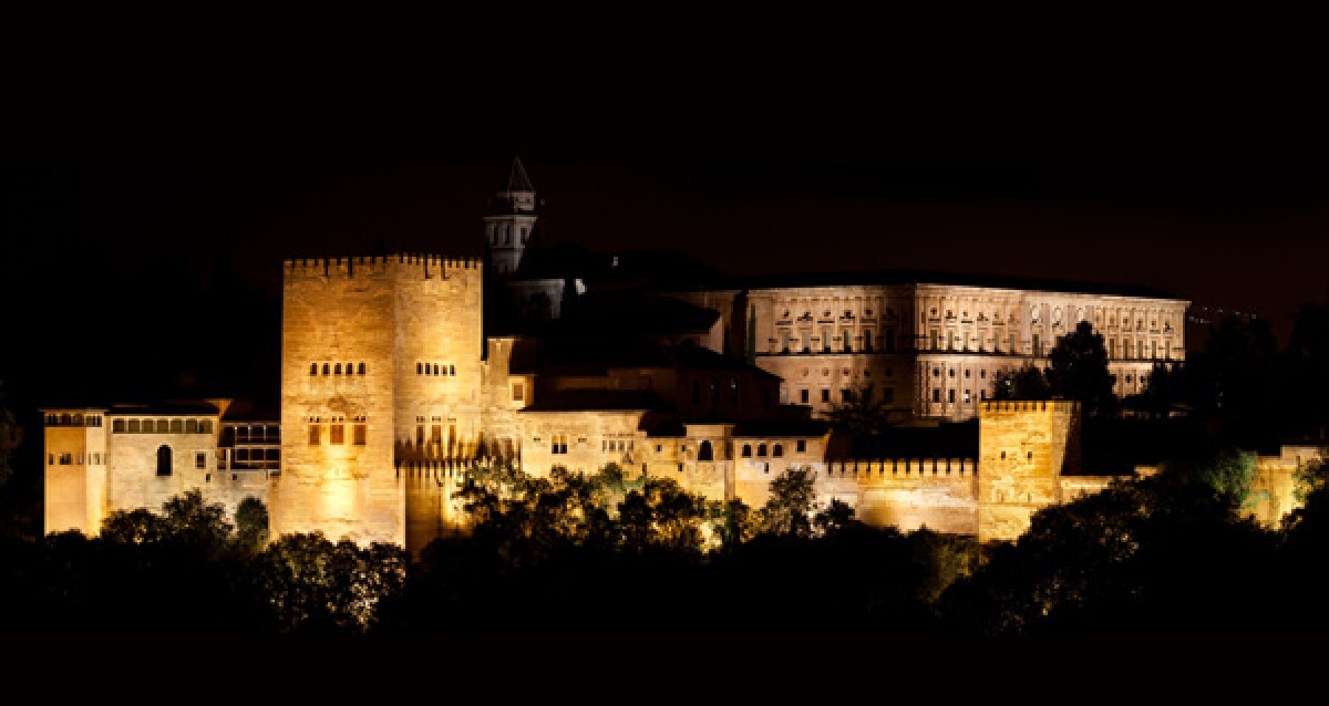 Granada là một trong ba địa điểm ngắm cảnh đêm tuyệt nhất ở Tây Ban Nha sau Barcelona và Seville. Thay vì vẻ hào nhoáng, cảnh đêm của Granada mang vẻ đẹp tinh tế, thanh lịch và rất cổ kính. Nổi bật nhất là khung cảnh ban đêm của cung điện cung điện Alhambra – cung điện cuối cùng của Tây Ban Nha. Cung điện này hướng lên ngọn đồi Albaicin và toát lên vẻ quyến rũ khác hẳn ban ngày. Cung điện Alhambra vào ban đêm không chỉ tuyệt đẹp khi nhìn từ đài quan sát mà khung cảnh nó thấp thoáng khi nhìn từ khắp các con hẻm cũng rất ngoạn mục.