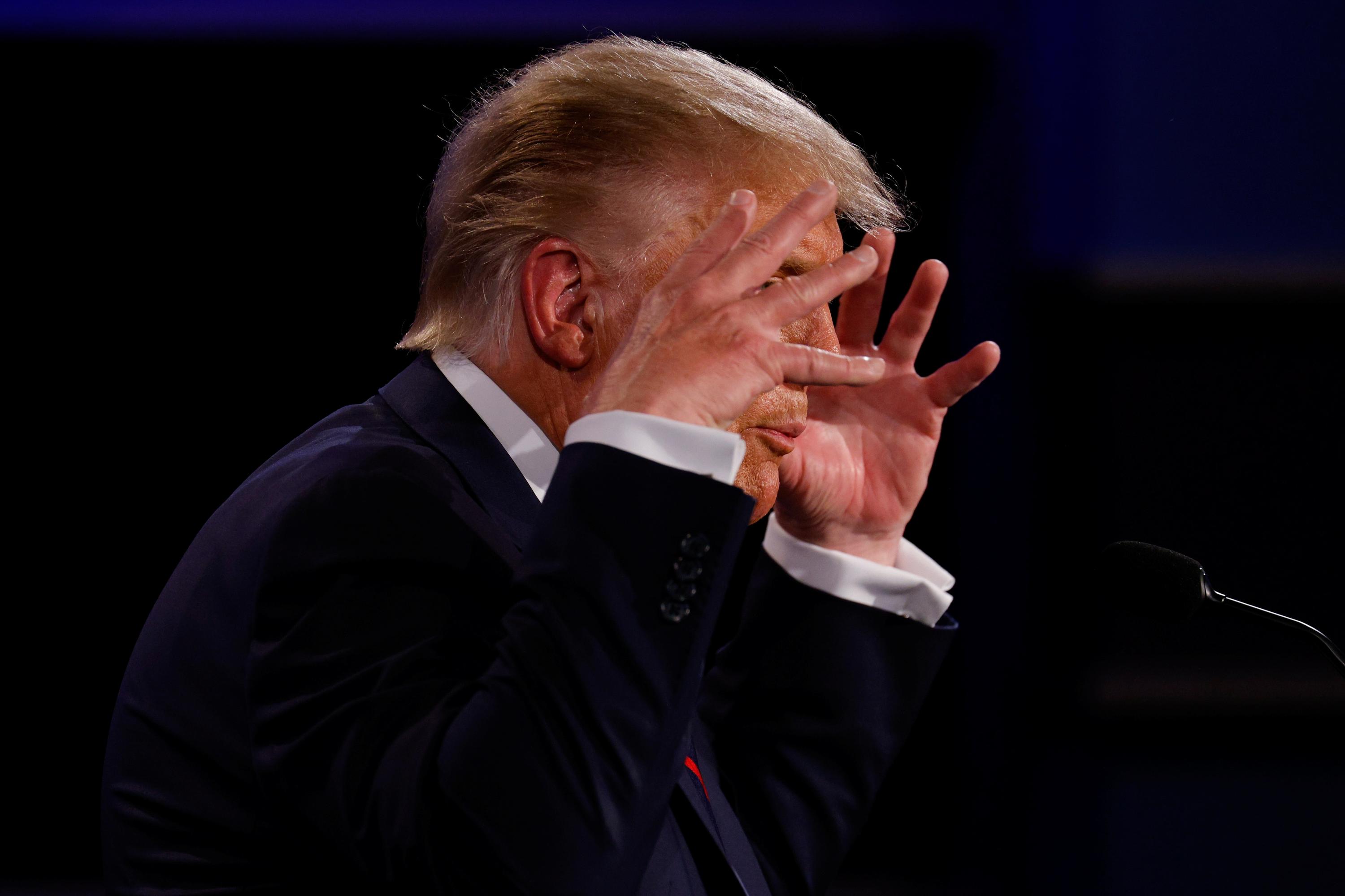 Tổng thống Donald Trump liên tục cắt lời 2 người còn lại trên sân khấu cuộc tranh luận ngày 29/9. Ảnh: Reuters.