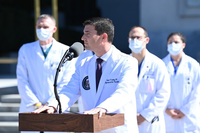 Đội ngũ bác sĩ tham gia cuộc họp báo gồm: Sean Conley, Sean N Dooley, John Hodgson, Wesley R Campbell, Jason M. Blaylock, Robert Browning, Brian Garibaldi, Juliana Lavopa, Megan Nasworthy.