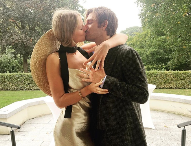 Ngày 4/10, siêu mẫu Toni Garrn thông báo kết hôn với tài tử Alex Pettyfer, hôn lễ diễn ra tại quê nhà Hamburg, Đức. Tại buổi lễ, người mẫu Victoria's Secret diện váy hai dây vàng, trang điểm nhẹ nhàng và để kiểu tóc xõa. Ông xã của người mẫu 28 tuổi chọn vest thanh lịch. Ảnh: Instagram.