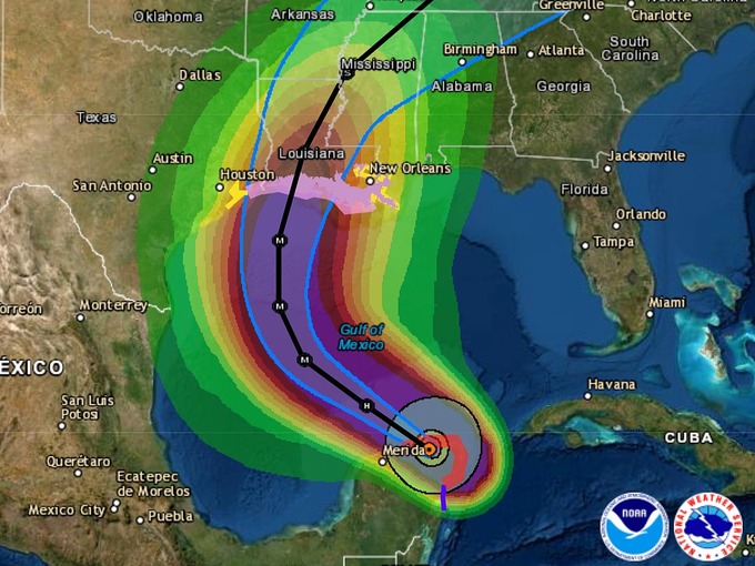 Đường đi dự kiến của bão Delta. Ảnh: NOAA
