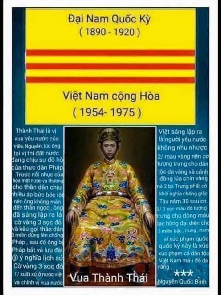 * Quốc kỳ với nền Vàng Ba Sọc Đỏ được dùng trong hai triều đại Kháng Pháp dưới sự lãnh đạo của vua Thành Thái (1890) và vua Duy Tân (1920).