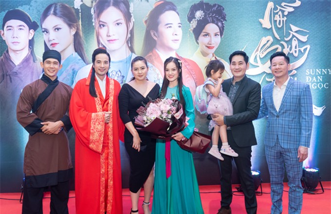 Phan Như Thảo (váy đen) cùng chồng và con gái tại sự kiện.