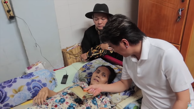 Xót xa trước hoàn cảnh của nghệ sĩ Hoàng Lan, Đàm Vĩnh Hưng rút một phong bì đựng 30 triệu ra tặng cho đàn chị, cùng nhiều món quà khác. Anh nói: