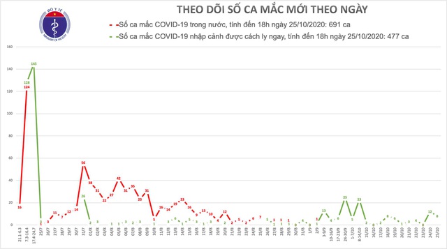 Như vậy, đến nay Việt Nam có 1.168 ca mắc Covid-19, 35 trường hợp tử vong. Ngày 25/10 là ngày thứ 53 liên tiếp Việt Nam không ghi nhận ca mắc Covid-19 ngoài cộng đồng.