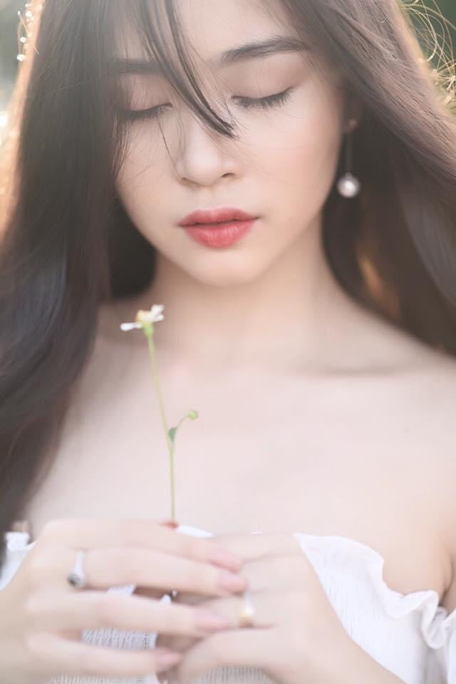 Nhan sắc xinh tươi của nữ sinh gốc Hải Phòng nền nã trong trang phục áo dài trắng.