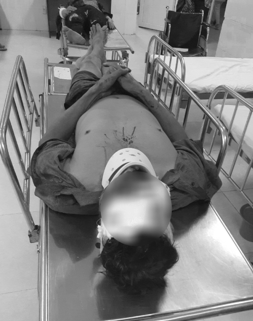 Bác sĩ Võ Thành Nam Bình, Phó giám đốc Bệnh viện Đa khoa tỉnh Bình Định, cho biết các bệnh nhân được người nhà đưa đến viện.