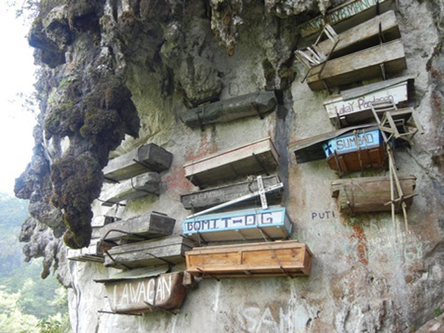 Một trong những khu nghĩa trang kỳ lạ nhất thế giới nằm ở thung lũng Echo thuộc thị trấn Sagada, một tỉnh miền núi của Philippines. Tại đây từng tồn tại tập tục kỳ lạ - mai táng người chết trên vách núi dựng đứng. Hay nói cách khác, đó là một nghĩa trang nằm lơ lửng trên không.