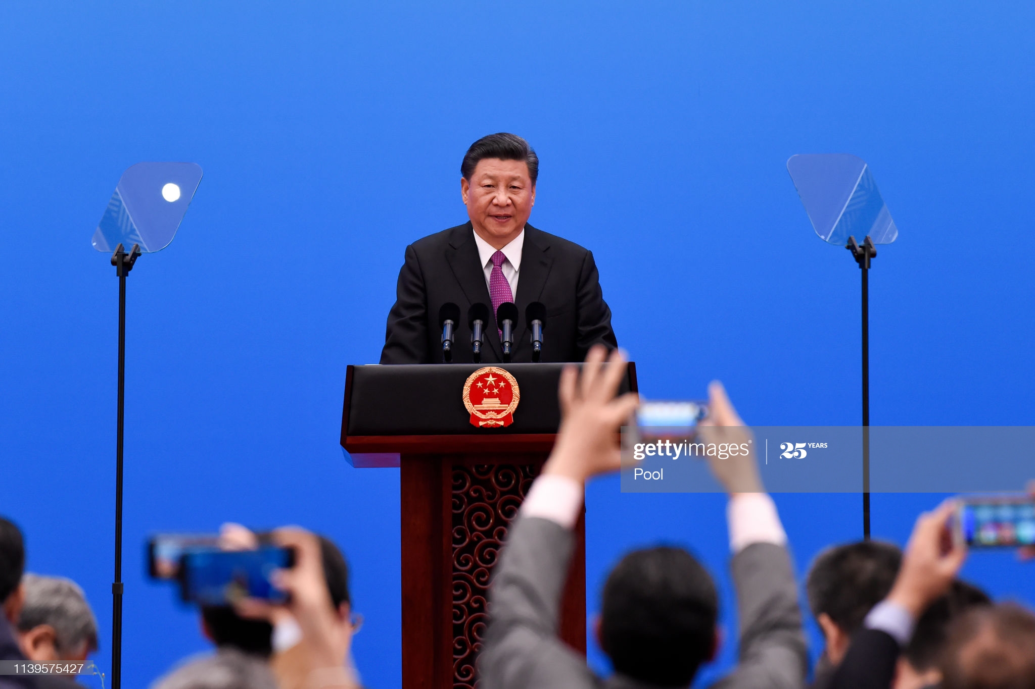 Ngày 27/4/2019, ông Tập Cận Bình tại cuộc họp báo bên lề Diễn đàn “Một vành đai Một con đường” được tổ chức tại Trung tâm hội nghị Quốc gia Trung Quốc. (Ảnh: Getty)