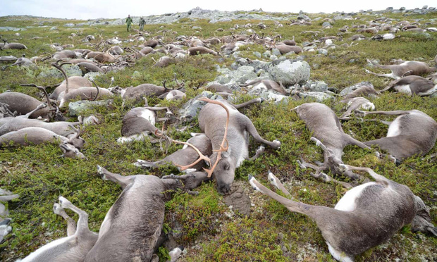Tháng 8/2016, một người kiểm lâm tại Na-uy đã phải chứng kiến cảnh tượng khiến anh sững người. Đó là ở cao nguyên Hardangervidda, và trước mắt anh là xác của một đàn tuần lộc hơn 300 con.