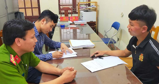 Cảnh sát lấy lời khai Khương Văn Anh. Ảnh: Lam Sơn.